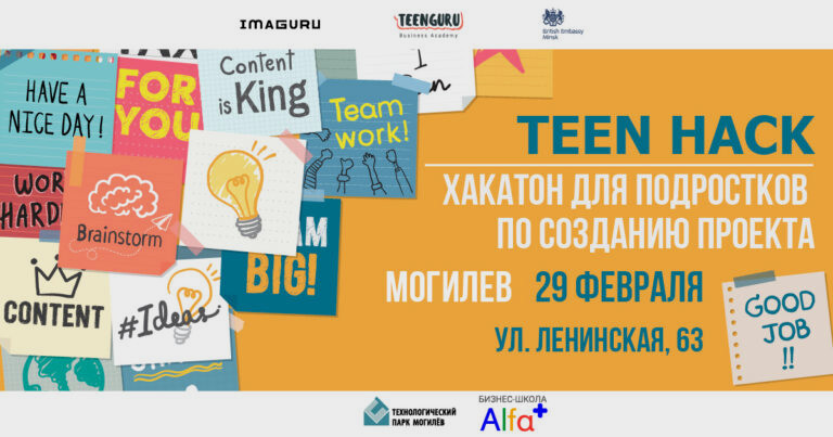 29 февраля 2020 TeenGuru Бизнес академия для подростков совместно с Технопарком Могилев, бизнес-школой Альфа Плюс при поддержке Посольства Великобритании в Республике Беларусь проведут Хакатон в Могилеве. Цель мероприятия – поддержать инициативных ребят, которые стремятся осваивать новое и получать практический опыт. Хакатон – это площадка для командной работы, развития идей, создания продукта и в итоге – […]